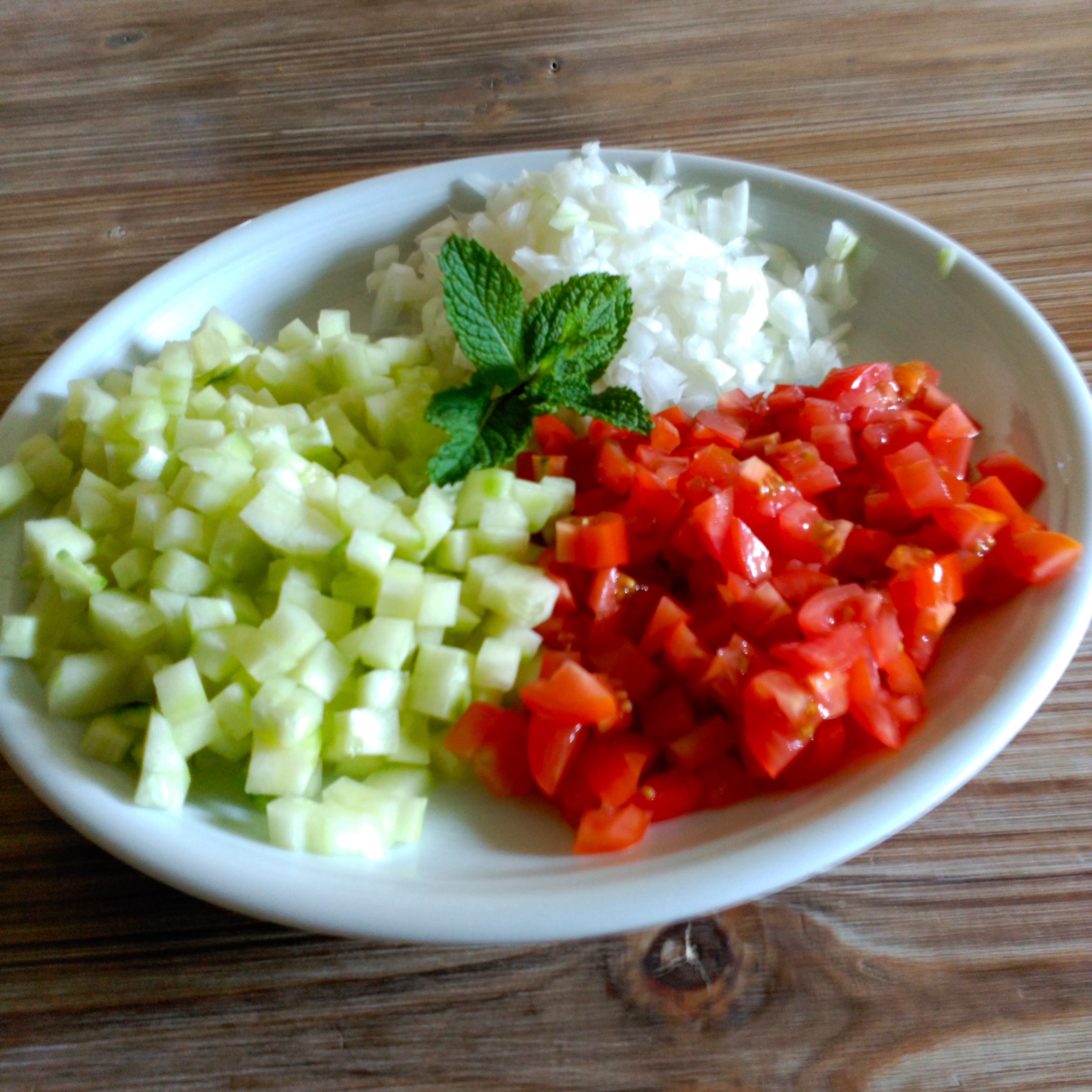 Mezclaremos la cebolla, el pepino y el tomate con el cous-cous.