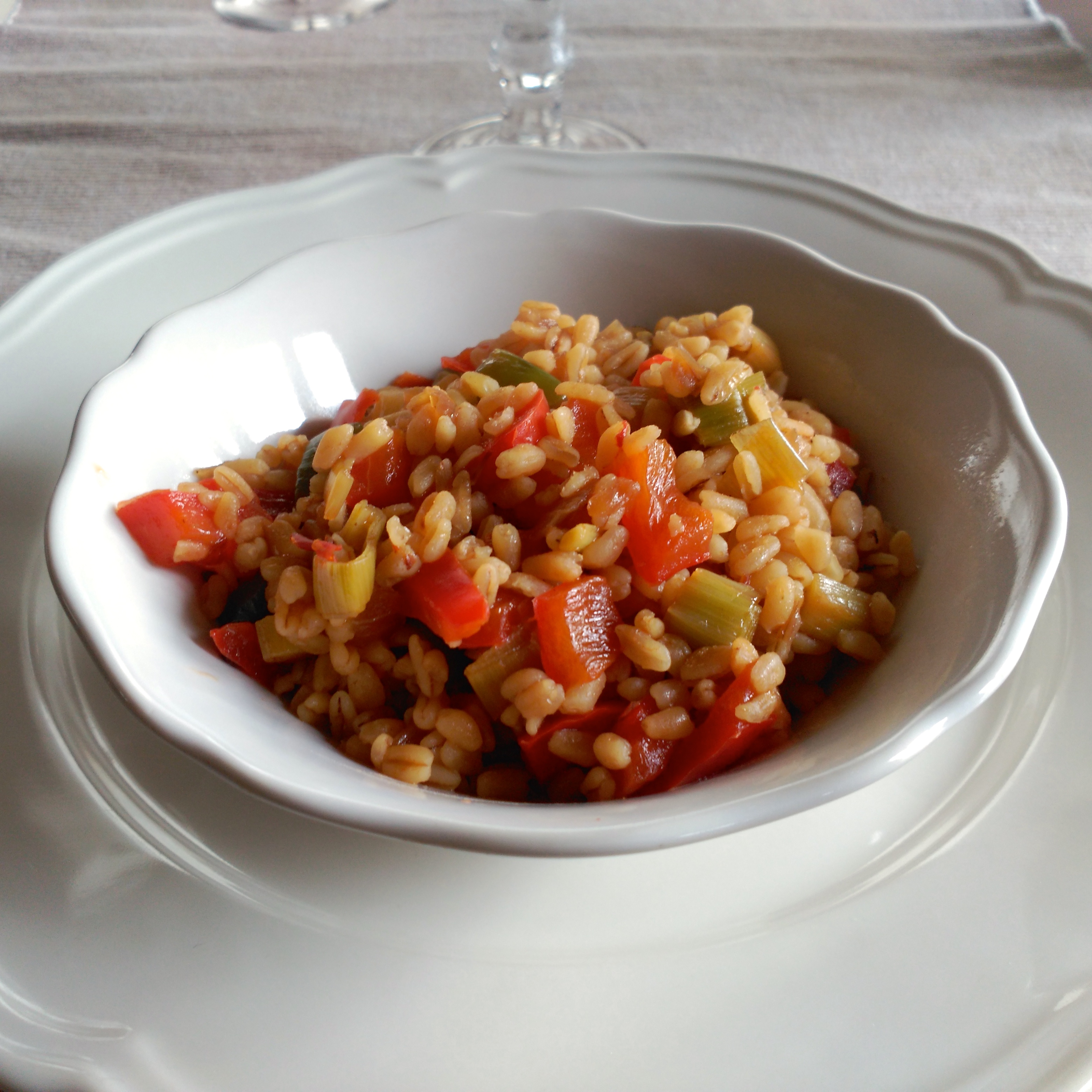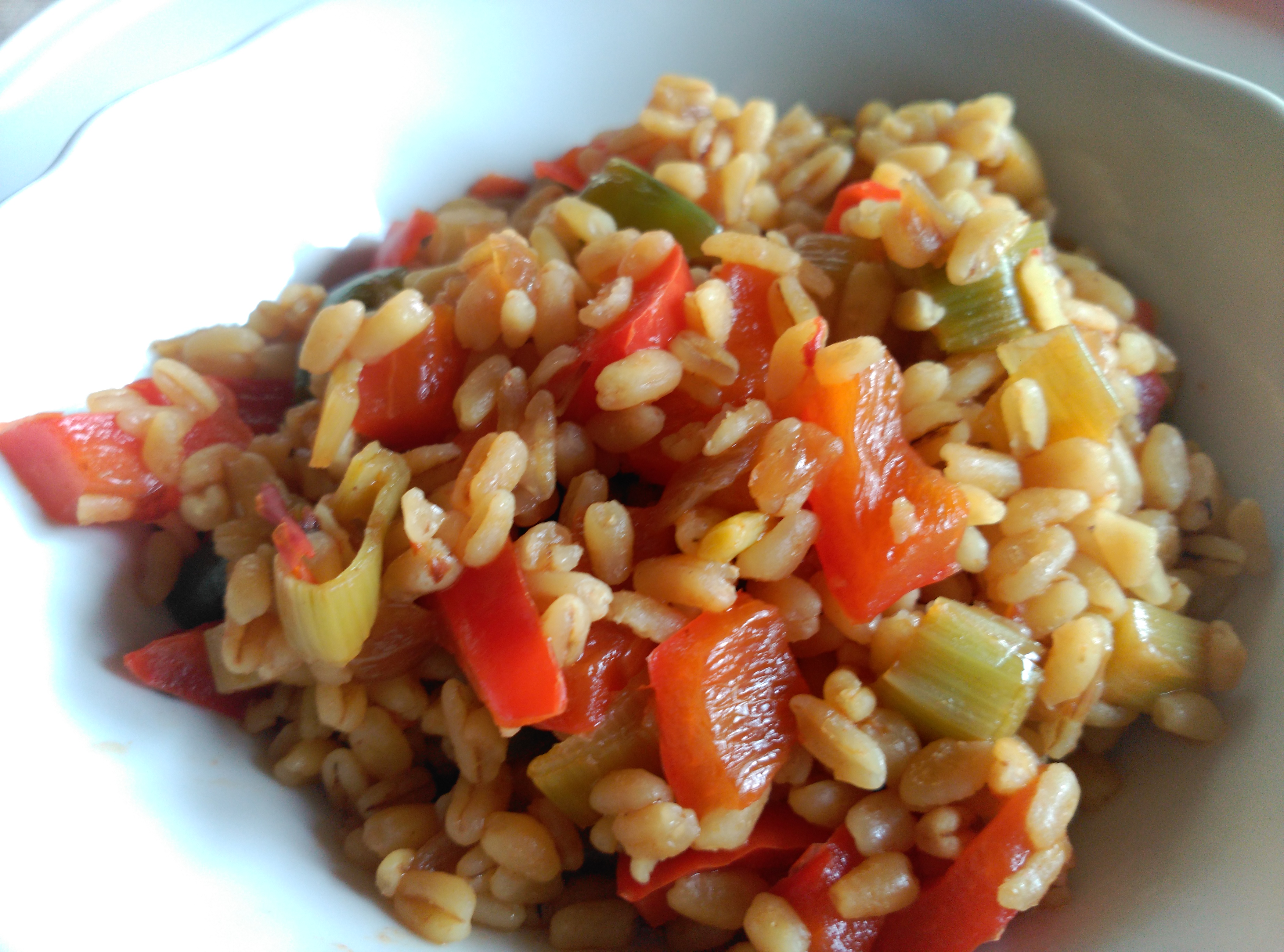 Hoy presentamos una receta vegetariana. Había oído hablar mucho del trigo tierno, de sus propiedades nutritivas, de sus múltiples usos, pero nunca lo había utilizado, hasta que hace poco lo vi en el supermercado y me animé a comprarlo. El resultado no ha podido ser más satisfactorio. El trigo tierno parece arroz y sabe a pasta. ¿No es fantástico?