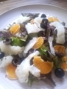 Hoy he probado esta deliciosa ensalada aprovechando lo mucho que me gusta el bacalao desalado. Los que me conocen saben lo aficionada que soy a la esqueixada de bacalao, plato típico de la cocina catalana.